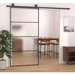 vidaXL Sliding Door Frosted ESG Glass and Aluminium 102.5x205 cm Black, Black