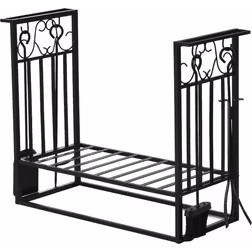HOMCOM Vintage Style Powder Coated Steel Firewood Log Rack Holder w/ Tools Black | TJ Hughes