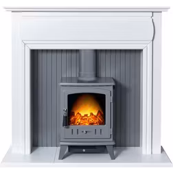 Adam 1.8kW Florence Stove Fireplace in Pure White with Aviemore Electric Stove in Grey Enamel 48 Inch, Grey