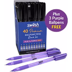 Swash Triangular Medium Ballpoints Black + 3 FREE Purple (Pack 40+3)