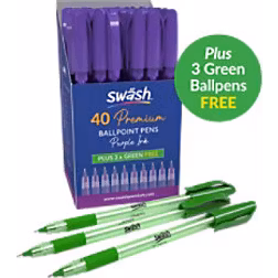 Swash Triangular Ballpoint Pens Rubber-Grip Purple (Pack of 40) + 3 Free Green BBT40PUR