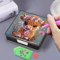 SHEIN 1pc Calf Design DIY Diamond Painting Asymmetrical Rhinestones Embroidery On Black Faux Leather Memo Pad Box With 160 Sheets, Ideal For Home Office & S