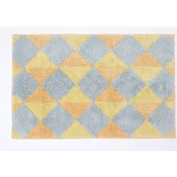 (Mustard Yellow) Harlequin Pattern Cotton Bath Mat