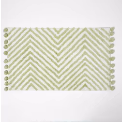 Homescapes Green Zig Zag Non-Slip Bath Mat with Pom Pom Edges, 50 x 80 cm, Machine Washable, Super Absorbent, Soft and Tufted, OEKO-TEX® certified