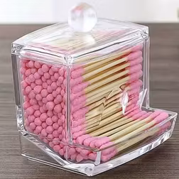 Shein 1 Pc Acrylic Qtip Holder With Bamboo Lid