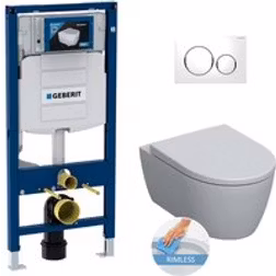 Geberit Toilet Set Duofix Rimless Wall-Hung Bowl Softclose Seat Sigma20 White Chrome Flush Plate Gebicon-C
