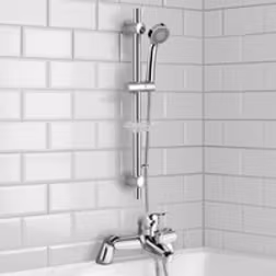 Chrome Bath Filler Shower Mixer Tap & Slider Rail Handset Kit - Silver - One Size
