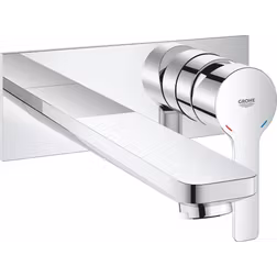 GROHE Lineare Wall-Mounted Two-Hole Basin Mixer without Concealed Body (Tap with a Rectangular Spout Projection 207mm, Centre Distance 110 mm, Water Saving Mousseur 5 l/min), Chrome, 23444001