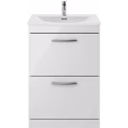 Nuie Athena 600 Floor Standing 2-drawer Vanity & Curved Basin - Gloss Grey Mist, Grey