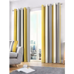 Fusion Whitworth Stripe Eyelet Lined Curtains, Ochre, 66 x 54 Inch