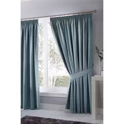 Fusion Dijon Blackout Pencil Pleat Lined Curtains, Duck Egg, 66 x 72 Inch