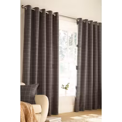 furn. Furn Ellis Check Room Darkening Eyelet Curtain Pair Grey (W)229Cm X (D)137Cm - One Size