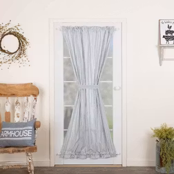 VHC Brands Farmhouse Sawyer Mill Ticking Rod Pocket Cotton Tie Back(s) Striped Curtain Door Panel 72x40 Blue