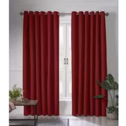 Essential Living Linen Look Eyelet Ring Top Blackout Curtains Red 229cm x 183cm, Red
