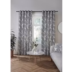 Fusion 'Matteo' 100% Cotton Light Filtering Pair of Eyelet Curtains in Black | Size: 117 cm width x 137 cm drop