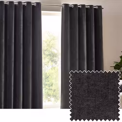 Yard Charcoal Heavy Chenille Velvet Eyelet Curtain 117 x 183cm - Grey