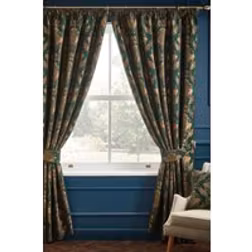 Shiraz Floral Damask Pencil Pleat Curtains - Emerald (Width 168 x Drop 229cm)