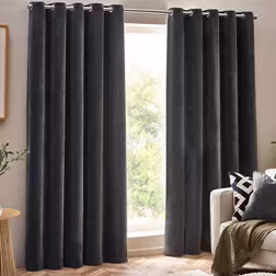 Heavy Chenille Woven Velvet Eyelet Curtain - Charcoal - 168cm width x 183cm drop