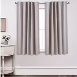 Living and Home 117 cm W x 137 cm H 2 Pcs Faux Linen Back Tab & Pole Pocket Top Blackout Curtains, Beige