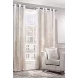 Essential Living Crushed Velvet Eyelet Ring Top Curtains Cream 117cm x 137cm, Cream