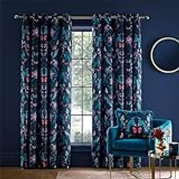 Mya Tropical Floral Lined Eyelet Curtains - Blue;Red;Navy (117cm W x 183cm D)