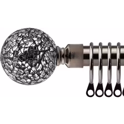 16-19mm Mirrored Extendable Metal Curtain Pole Set Black Silk 160-300Cm - One Size