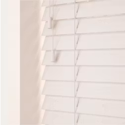 New Edge Blinds 50Mm Slat White Real Wood Venetian Blind With Strings 120Cm Drop 60Cm Wide, White