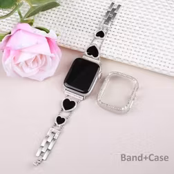 SHEIN Watch Band And Case Combination Set Compatible With Apple Watch Women'S Shiny Rhinestone Metal Chain With Cute Heart-Shaped Decoration And Anti-Drop A