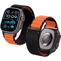 Spigen Nylon Fabric Band with Hook Apple Watch Strap Compatible with Apple Watch Ultra 3/2/1 (49mm), Series 11/10 (46mm), 9/8/7 (45mm), SE/6/5/4 (44mm), 3/2/1 (42mm) - Black Orange