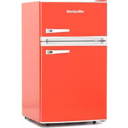A freestanding Montpellier fridge freezer with the fridge above the freezer. The freezer part of this fridge freezer holds 26 litres and the doors can be hung on both the left and
