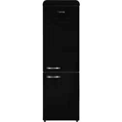 A freestanding Swan fridge freezer where the freezer is underneath and the fridge on top. The fridge can hold 180 litres. The doors hang on the right.