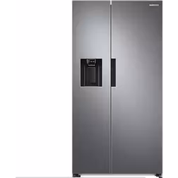 This freestanding Samsung fridge freezer has fridge and freezer next to each other. It is 91.2 centimetres wide. It has several features, including a digital display.