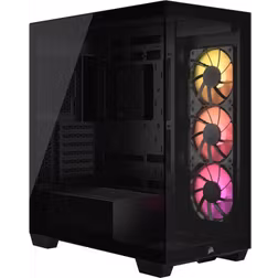 CORSAIR 3500X ARGB Mid-Tower ATX PC Case – Panoramic Tempered Glass – Reverse Connection Motherboard Compatible – 3x CORSAIR RS120 ARGB Fans Included – Black