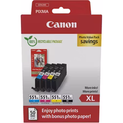 Canon CLI-551 XL C M Y BK Pack of 4 cartridges (Black XL Cyan XL Magenta XL Yellow XL) Genuine (Recycled Cardboard Multipack)