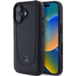 Case Iphone 16 Mercedes Genuine Leather Black Star Metal