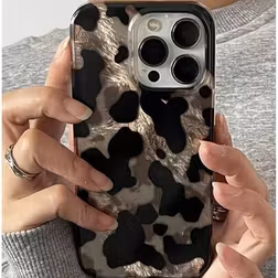 Shein Luxury Retro Cow Pattern Gradient Glitter Tinfoil Phone Case for iPhones Black