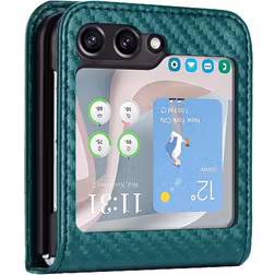(Bottle green ) Flip Case for Samsung Galaxy Z Flip 6 Premium Leather Carbon Fiber Surface with Card Slot and Kickstand with Detachable Hand Strap