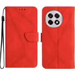 (Red) Case for Oneplus 13r 5g Stitching Embossed Leather Wallet High Quality Tpu Soft Pu Leather