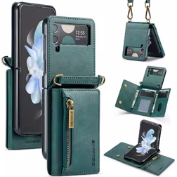 (Green) Wallet Case for Samsung Galaxy Z Flip 4 Magnetic Long Strap Rfid Blocking Protective Pu Leather