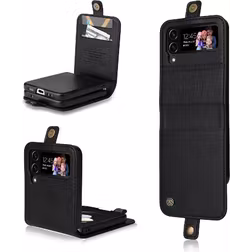 (Black) Flip Case for Samsung Galaxy Z Flip 4 with Card Slots Strong Magnetic Attraction and Stand Functionality Faux Leather and Full Matte Tpu