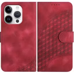 (Rose red ) Flip Case for iphone 16 Pro Flip Business Shockproof Leather Case Geometric Pattern Magnetic Card Holder Pu Leather Flip Cover