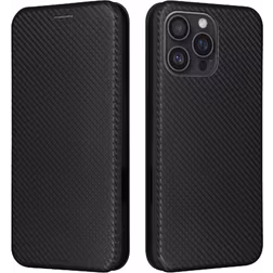 (Black) Flip Case for iphone 16 Pro Full Protection Card Insertion Magnetic Carbon Fiber Leather Folio Flip Case with Card Holder Kickstand