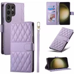 (Purple) Flip Case for Samsung Galaxy S23 Ultra Shockproof Dual Straps Elegant Wallet Leather Case