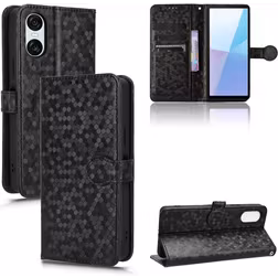 (Black) Case for Sony Xperia 10 Vi Leather Wallet Cover Geometric Pattern Magnetic Clasp