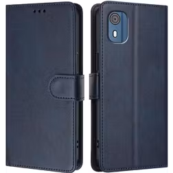 (Blue) Classic Style Flip Case for Nokia C02 Rfid Blocking Card Holder Shockproof Wallet Case Magnetic Closure