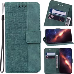 (Green) Flip Case for Xiaomi Redmi Note 14 Pro Plus 5g Geometric Embossed Premium Pu Leather Kickstand Feature Wallet Cover