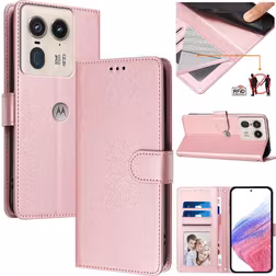 (Pink) Classic Style Flip Case for Motorola Edge 50 Ultra Wallet Case Rfid Blocking Magnetic Closure Card Holder Shockproof