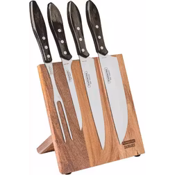Tramontina Churrasco Stainless Steel Kitchen Knife & Carving Fork Set with Wooden Stand, 5 Piece