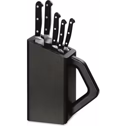 A useful knife set which contains five different knives, for example a cooks knife. The blades are made from steel and are therefore very durable.
