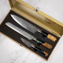 Katana Saya Elements 3 Piece Kitchen Knife Set, Rainforest Green - High Carbon VG-10 Damascus Steel for Extreme Toughness & Sharpness – Natural Olivewood & Resin Handle – Chef, Bread & Paring Knife